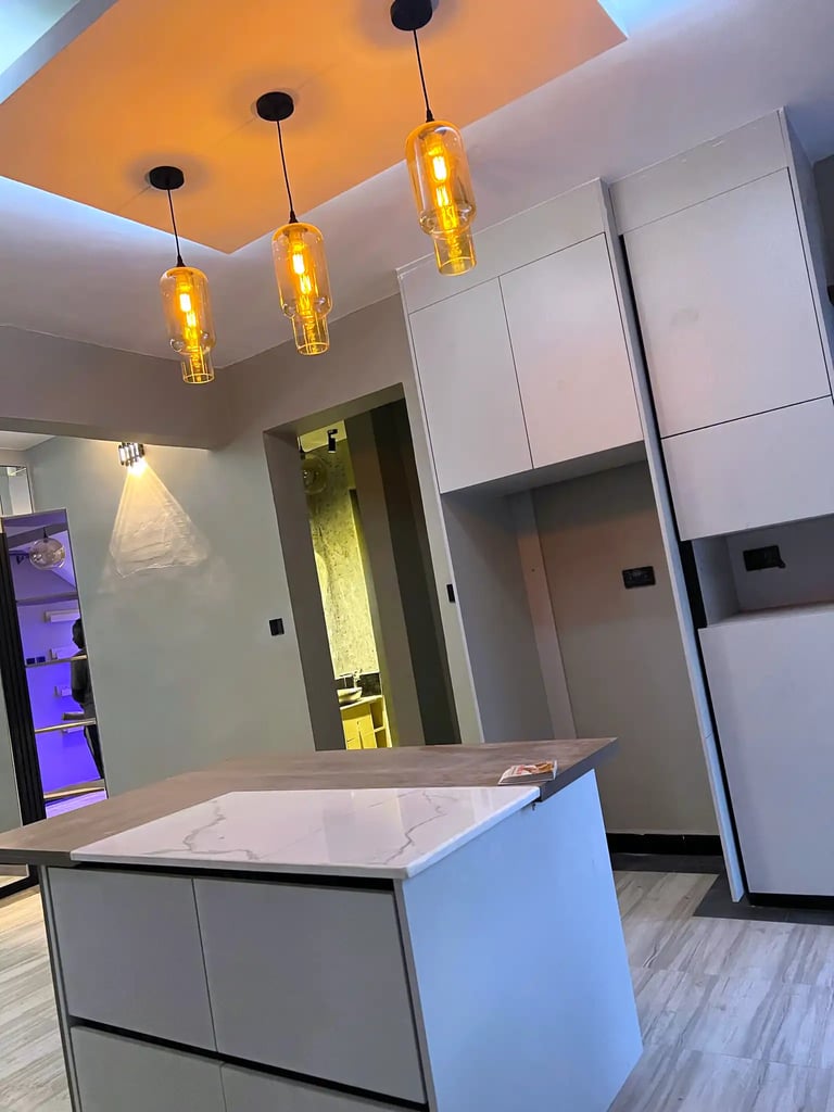 Twinfalls, Malaa; Full home renovation including kitchen remodel, sunken lounge design, bathroom upgrades, and custom cabinetry to create a modern luxury residence.